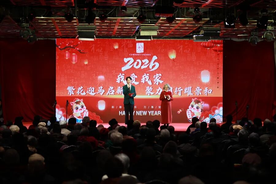2月6日,上海亲和源老年公寓 2026 年“我爱我家——繁花迎马启新程,聚力同行耀亲和”新春团拜会在多功能厅热闹举行,社区会员欢聚一堂,共叙往昔快乐时光,共话来年幸福美满。